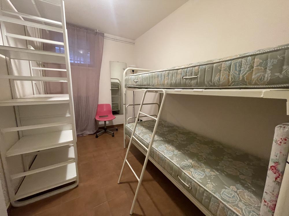 L’appartamento dispone di sala con cucina a vista, disimpegno, una camera matrimoniale e una camera con letto a castello e un bagno con box-doccia finestrato. Non è presente aria condizionata. L’immobile è comodo a tutti i servizi di prima necessità ed il mare dista c.a. 800 m. Utenze incluse ed escluse spese di agenzia.