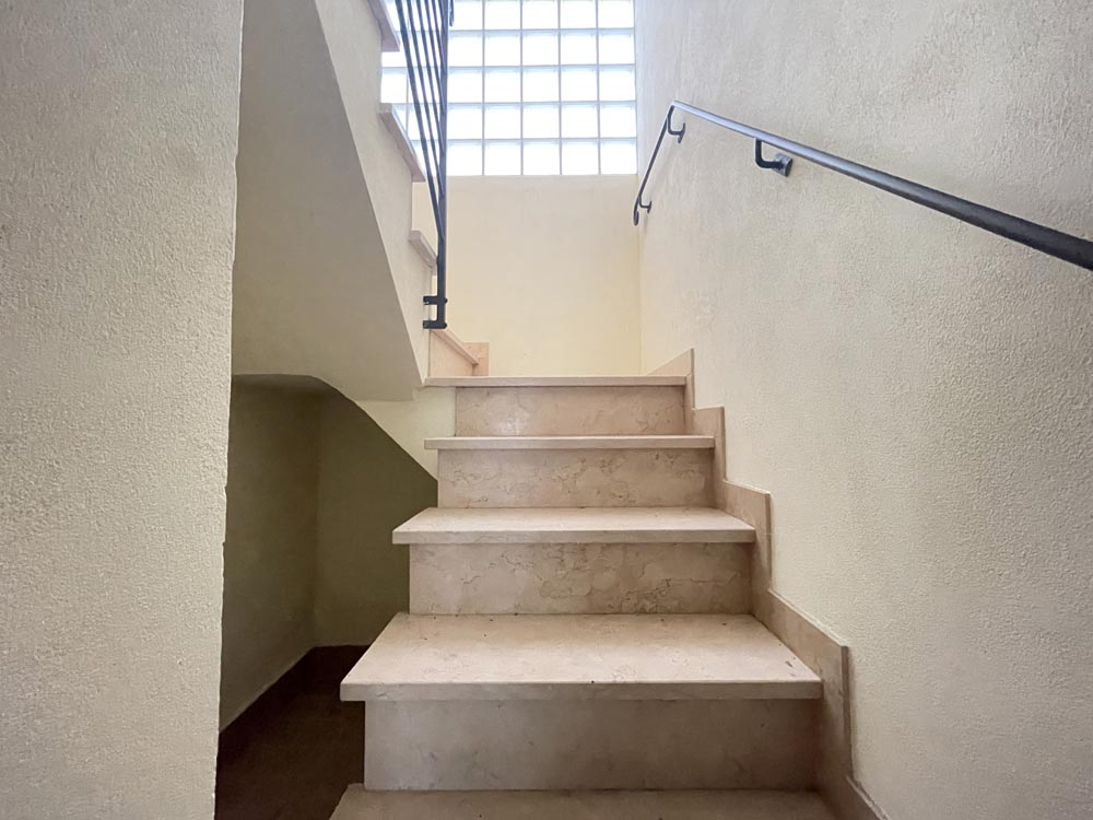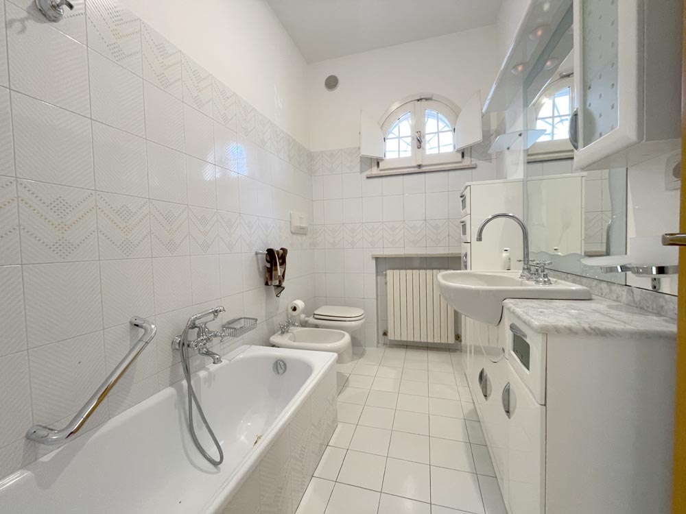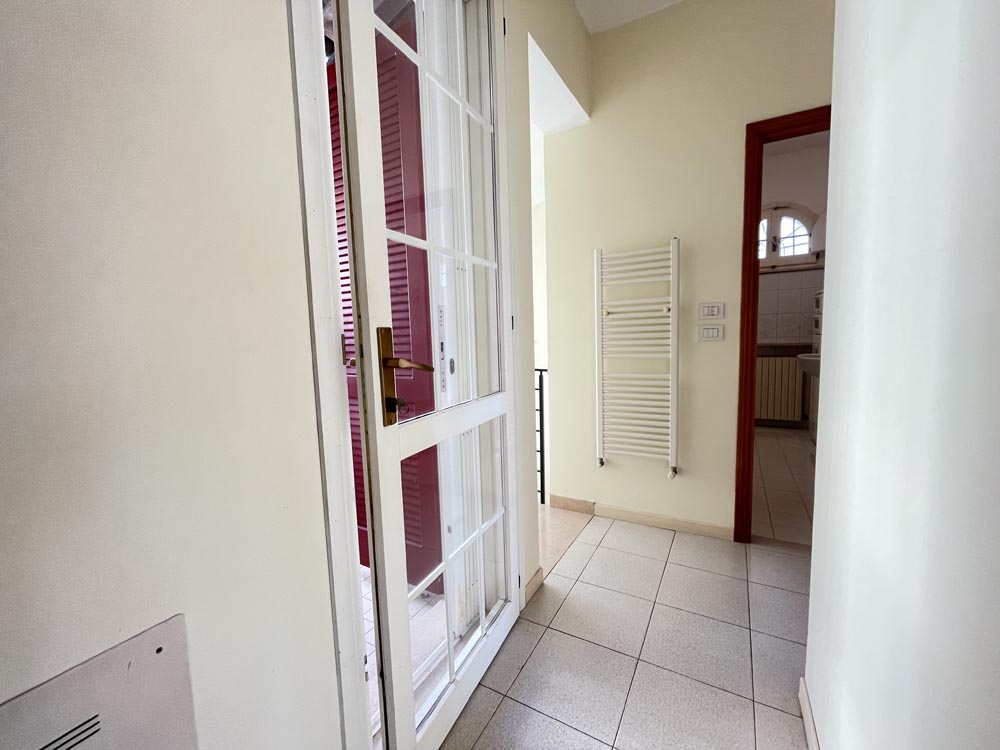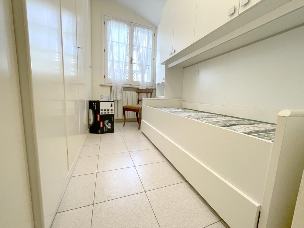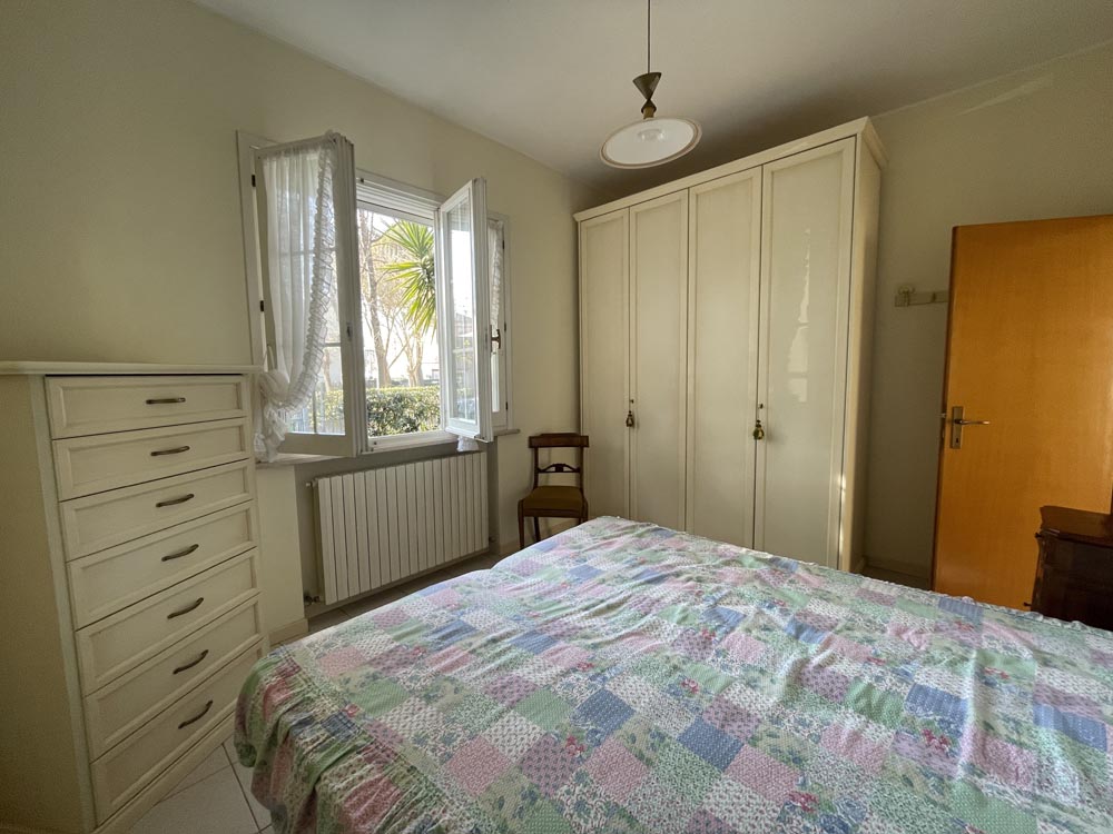 Ingresso su zona giorno con divano letto matrimoniale in soggiorno, cucina abitabile, disimpegno, camera matrimoniale, camera con due posti letto e doppi servizi al piano, entrambi finestrati uno con vasca e uno con box-doccia.