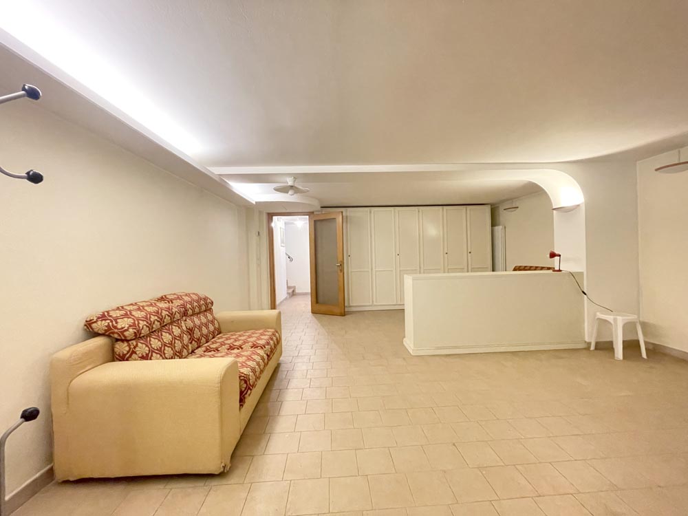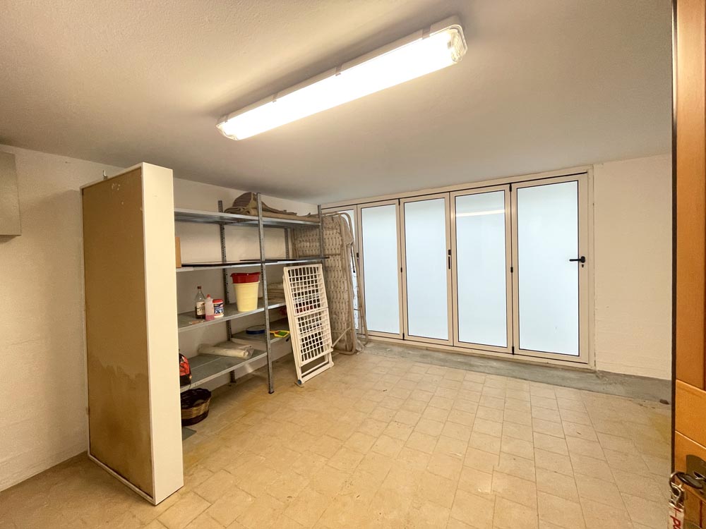 Al piano interrato, accessibile dall’interno e dall’esterno, comodo garage per posizionare comodamente l’auto e ampia taverna dove è presente un ulteriore divano-letto matrimoniale.
