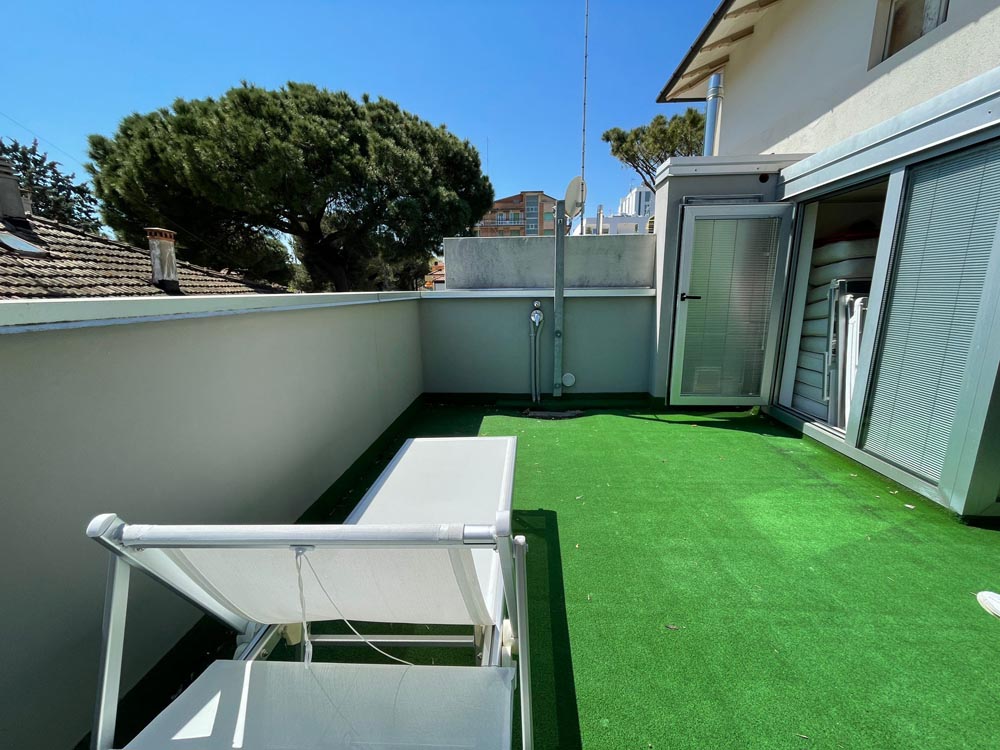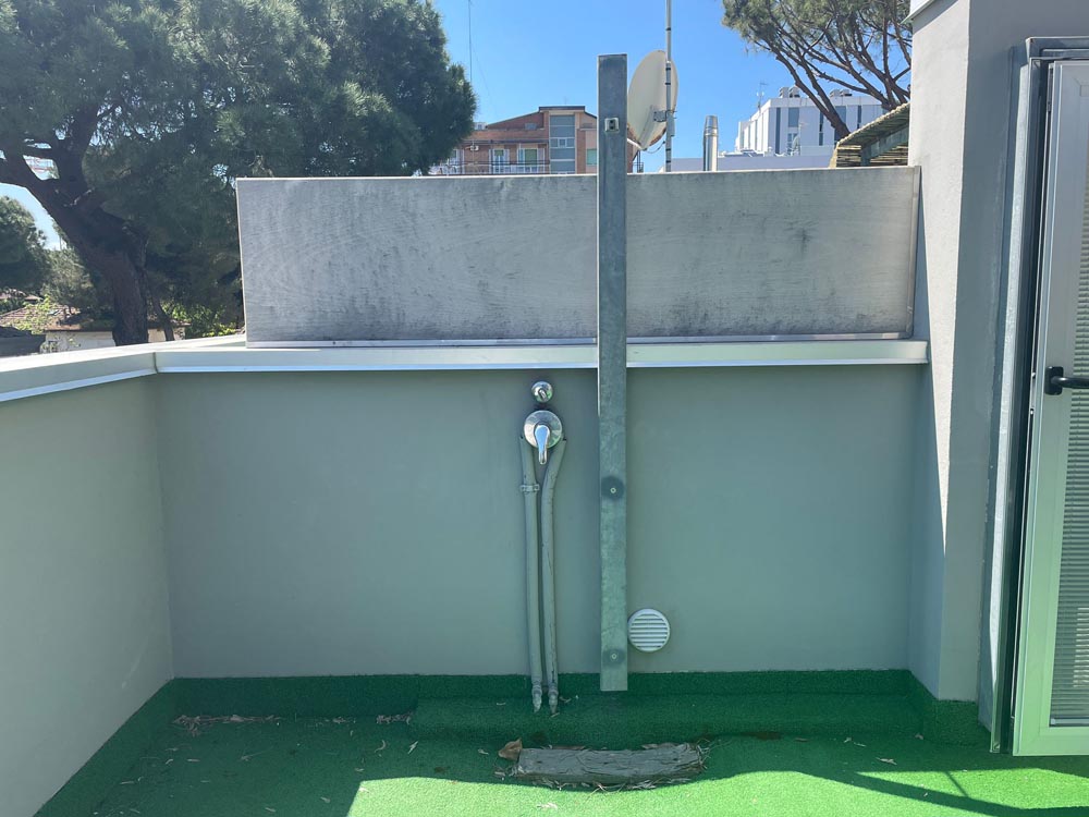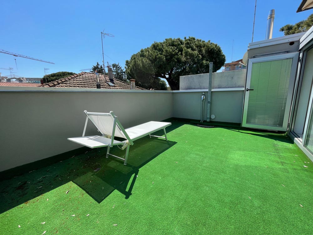 A pochi passi dalla spiaggia, a 20 m da viale Ceccarini pedonale, affittasi appartamento disposto su due livelli, ideale per nucleo famigliare di massimo 4 persone, composto da soggiorno con divano letto matrimoniale, cucinotto in nicchia al piano terra, al primo piano grande camera matrimoniale con balcone, bagno con doccia in cristallo e sanitari sospesi. Al piano copertura solarium di 20 mq attrezzato con pergola e doccia esterna per cene/pranzi all’aperto o per i vostri aperitivi! Aria condizionata, TV LCD, fuochi elettrici, lavatrice.