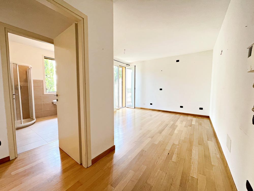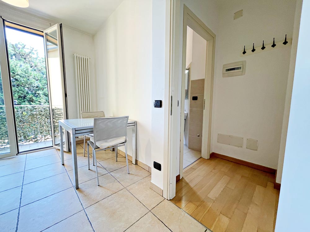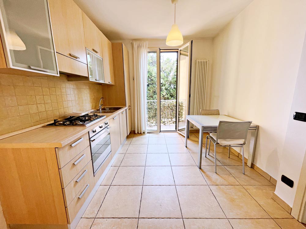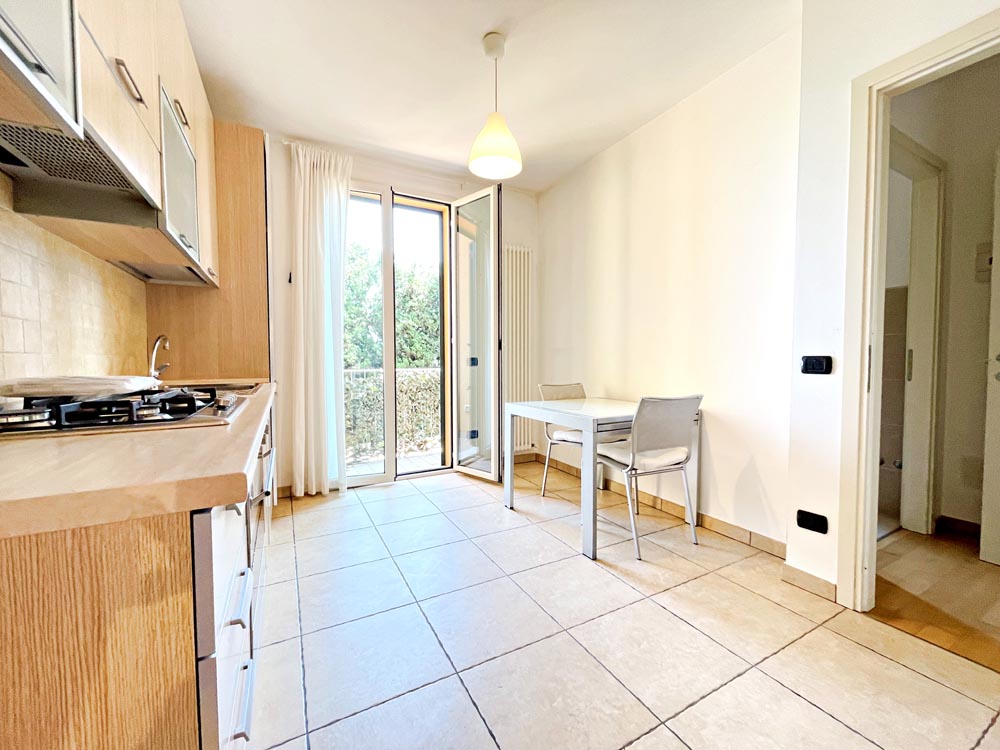Ingresso su ampio living molto luminoso con delizioso balcone affacciato sul verde, cucina abitabile anch’essa con balcone, bagno finestrato con box doccia ed a seguire vano lavanderia dedicato.