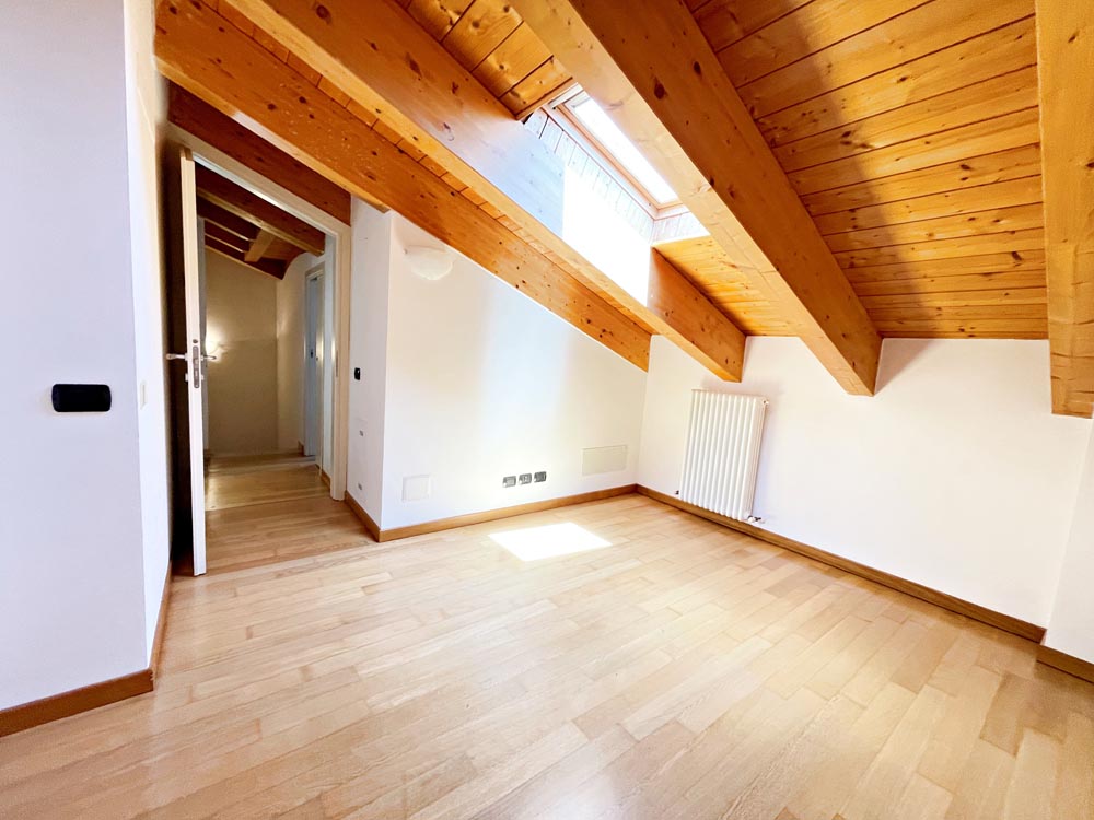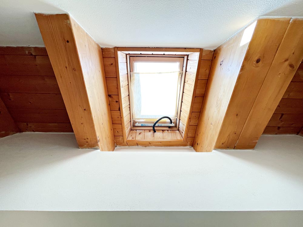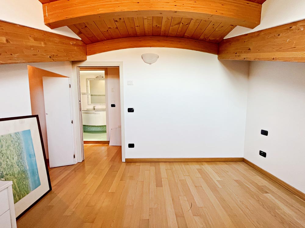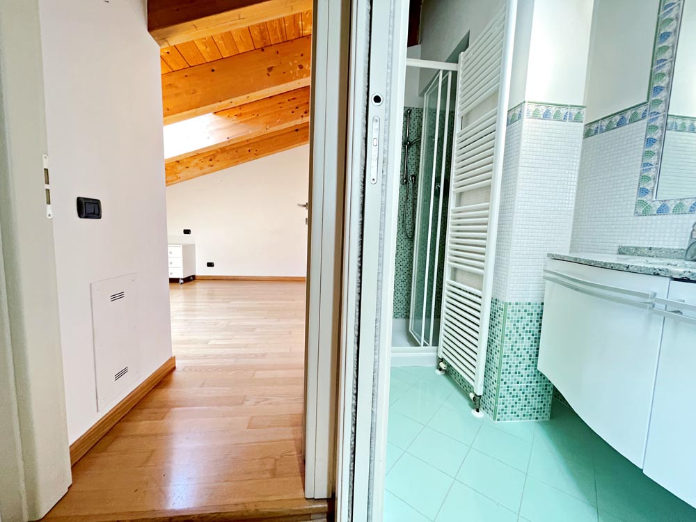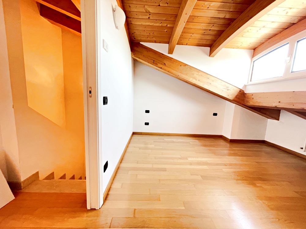 Salendo le scale interne accediamo alla zona notte con due camere da letto di cui una con cabina armadio ed un bagno sempre finestrato tramite velux, con box doccia.