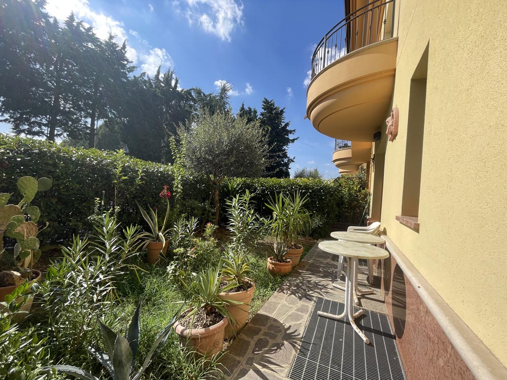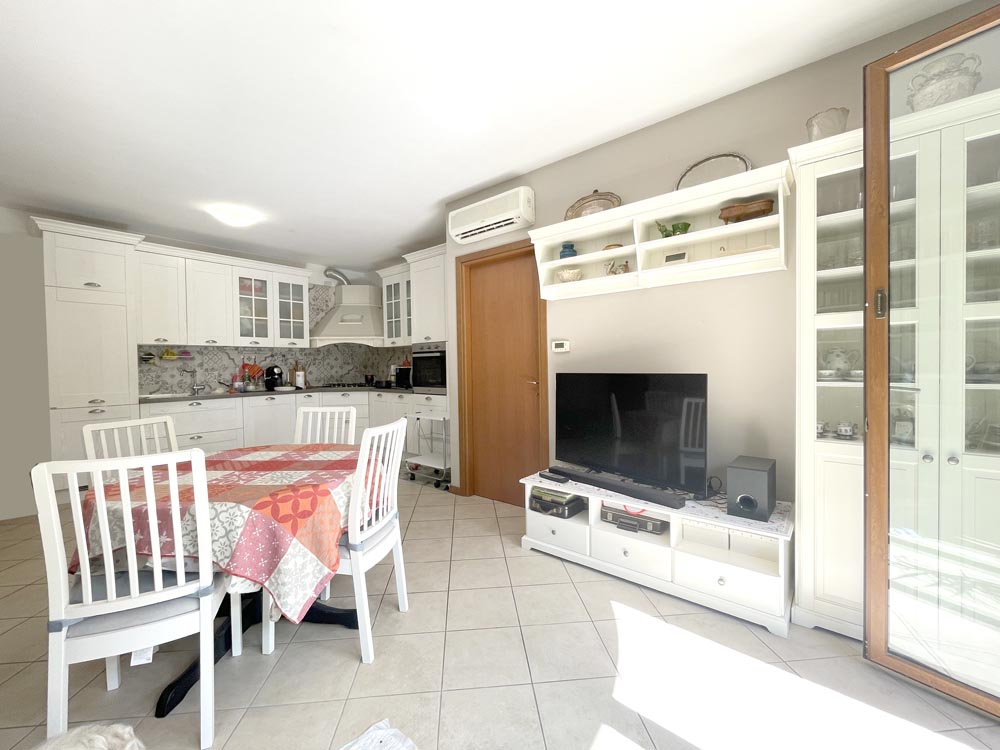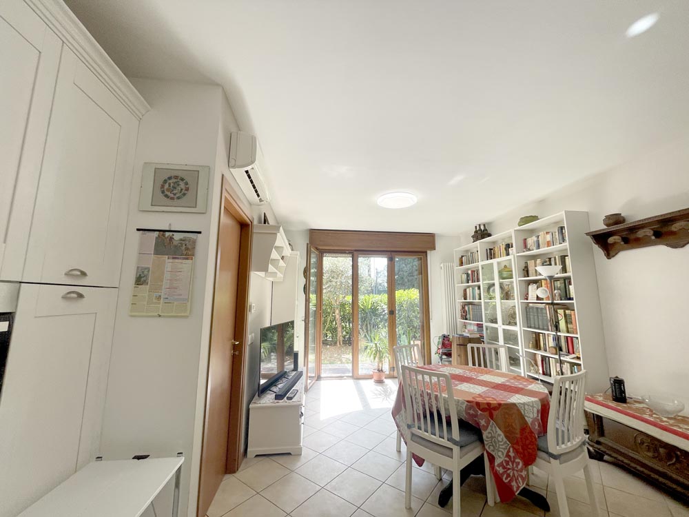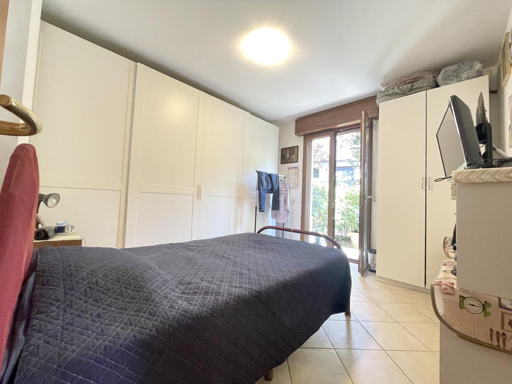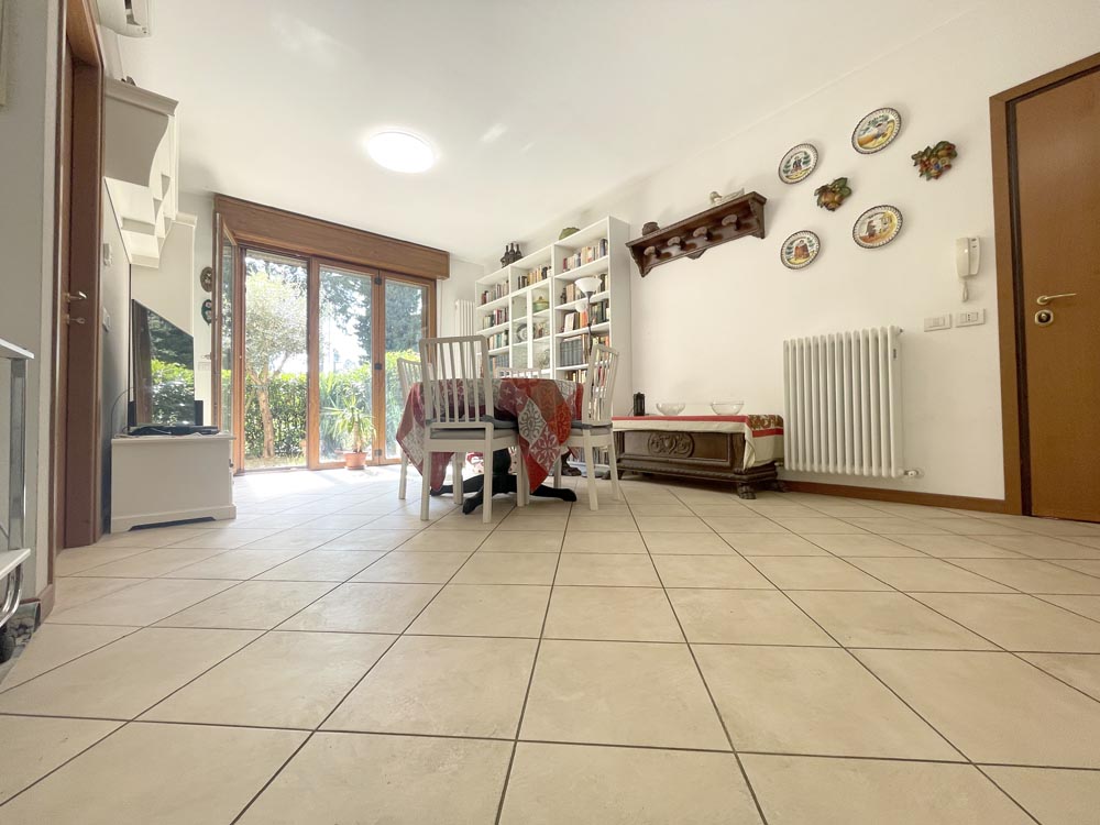 Appartamento posto al piano terra libero su due lati, internamente composto da ingresso su ampio soggiorno con cucina a vista, disimpegno reparto notte con una camera matrimoniale, una cameretta che può ospitare un letto a una piazza e mezza, un bagno finestrato con box, un giardino di c.a. 80 mq., ideale anche per chi ha un cane e per pranzi e cene all’aperto.