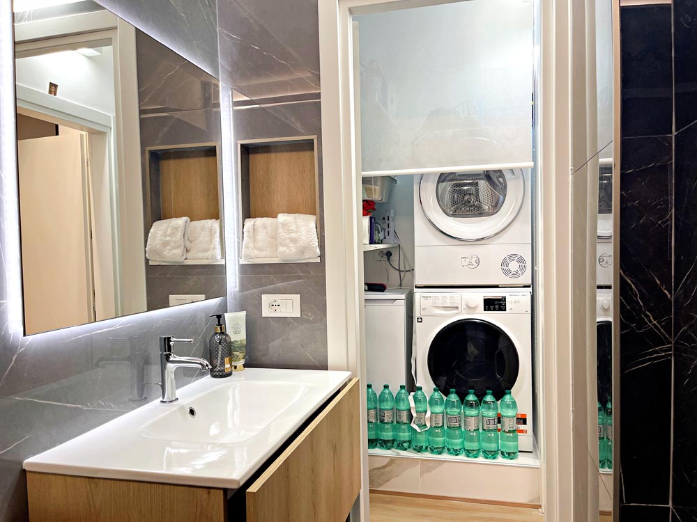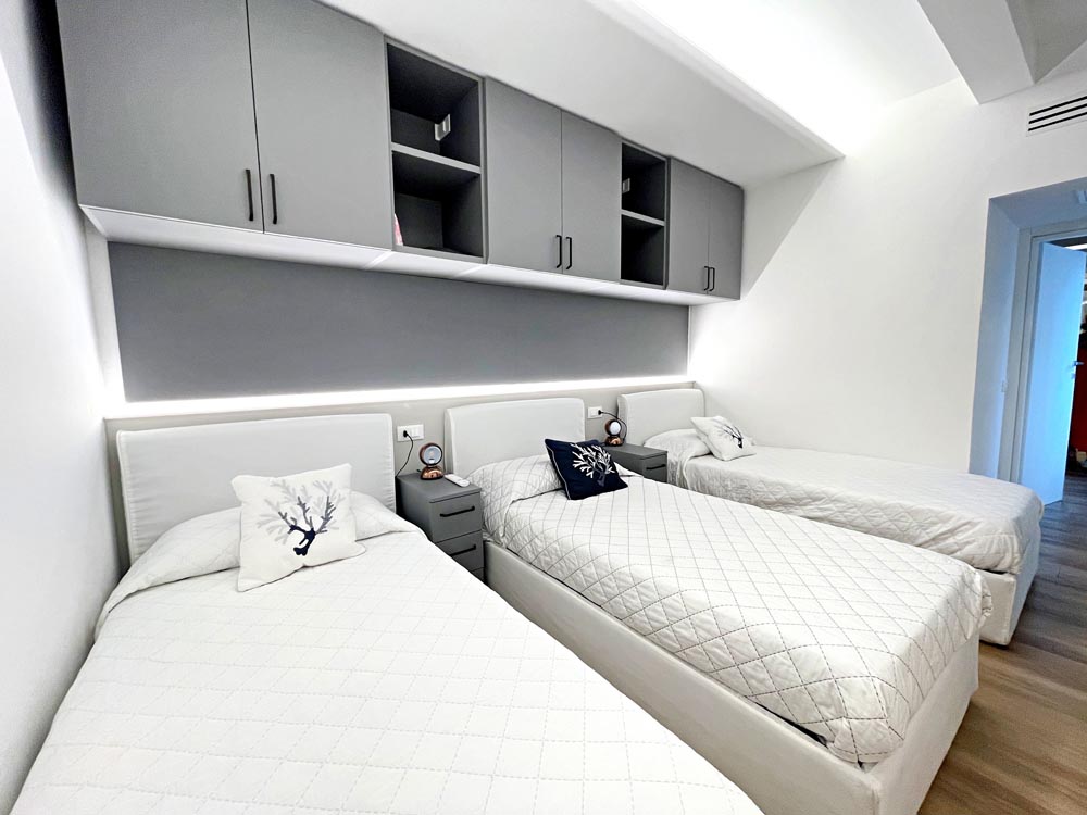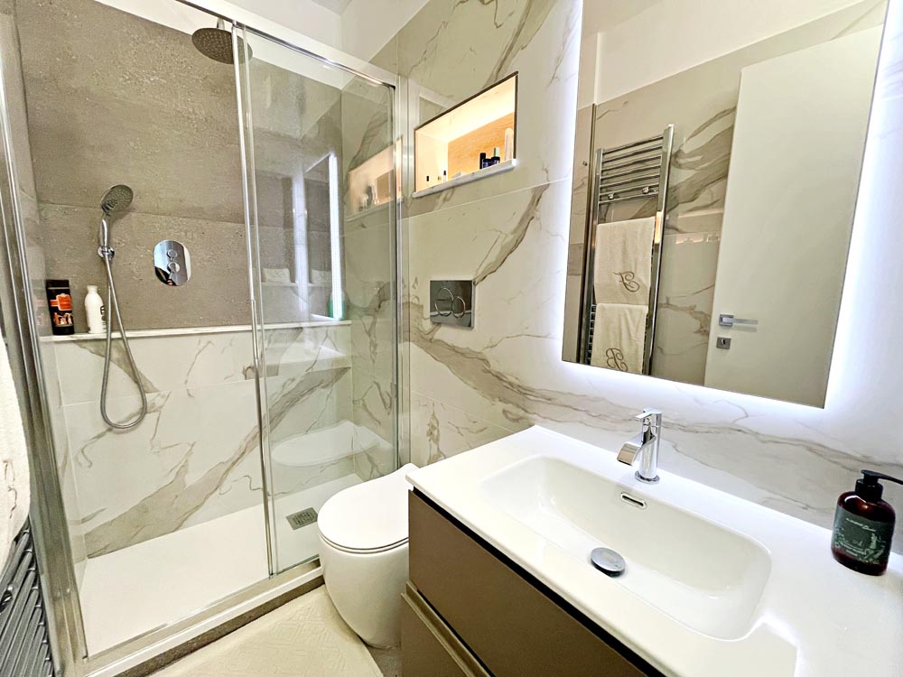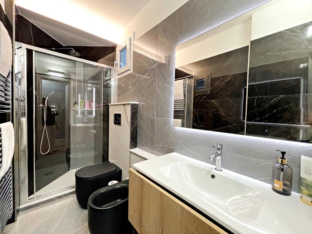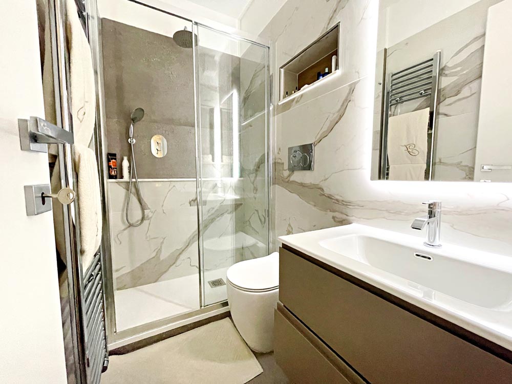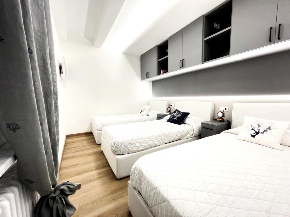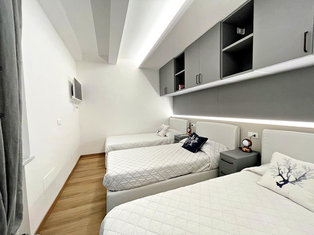 Due grandi camere da letto, due bagni di cui uno riservato per la camera padronale, il secondo con anti-bagno e lavanderia entrambi con box doccia walk-in.Aria condizionata in tutti gli ambienti, realizzazione dell’ascensore già deliberata, tutte le utenze sono autonome.