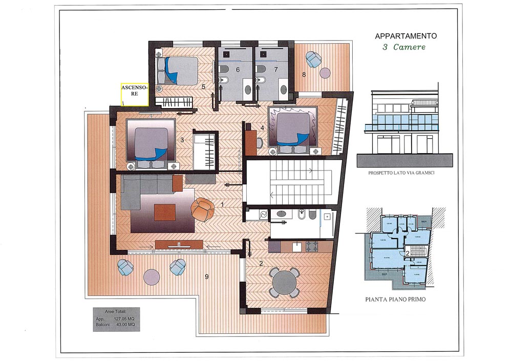 Appartamento posto al piano primo ristrutturato con finiture di pregio e centralissimo accanto al famoso Viale Ceccarini e adiacente al Grand Hotel di Riccione.
