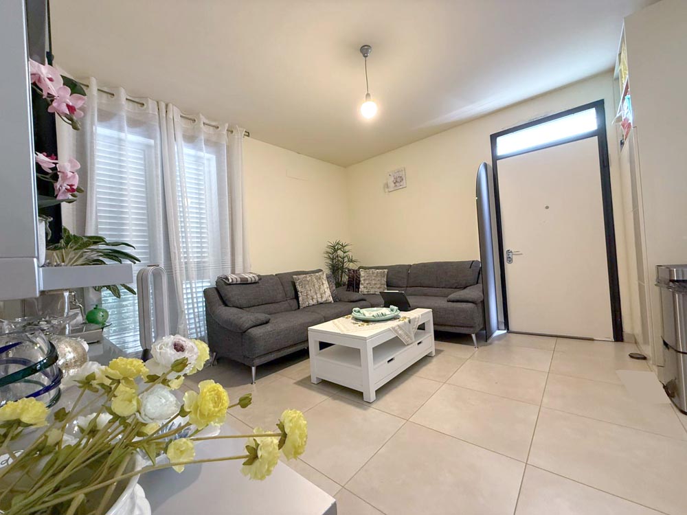 Ingresso su luminosa zona living con cucina open space a seguire accediamo al comodo disimpegno che conduce alla zona notte, composta da ampia camera da letto matrimoniale, seconda cameretta, ampio bagno con box doccia angolare.