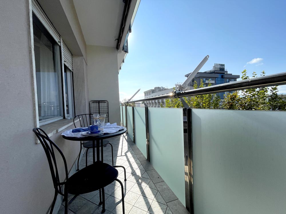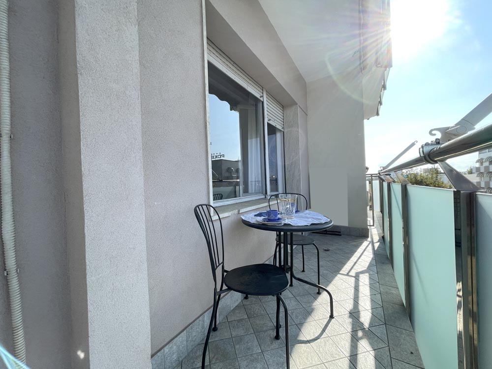 Il balcone è protetto da tende ombreggianti che rendono lo spazio vivibile in ogni momento.Un valore aggiunto raro in questa zona: Possibilità di acquistare a parte posto auto coperto, comodo e sicuro anche in piena estate.