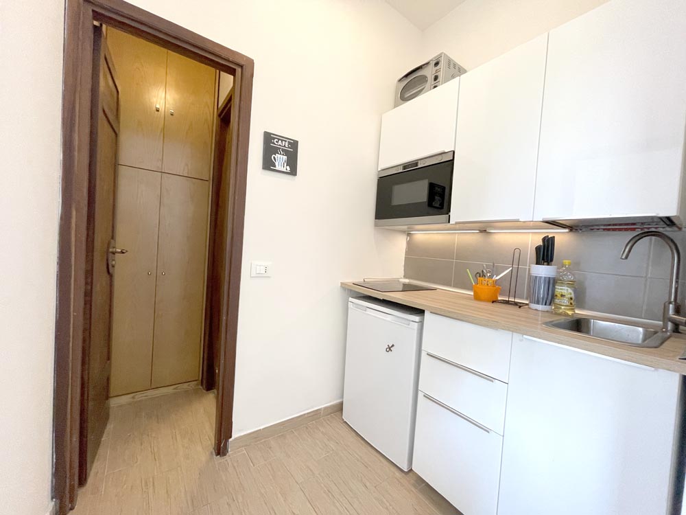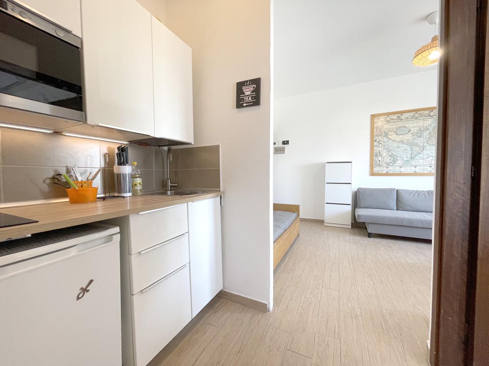 L’ingresso si apre su un soggiorno intimo e luminoso, proseguendo troviamo la cucina, camera matrimoniale e bagno con doccia in nicchia.