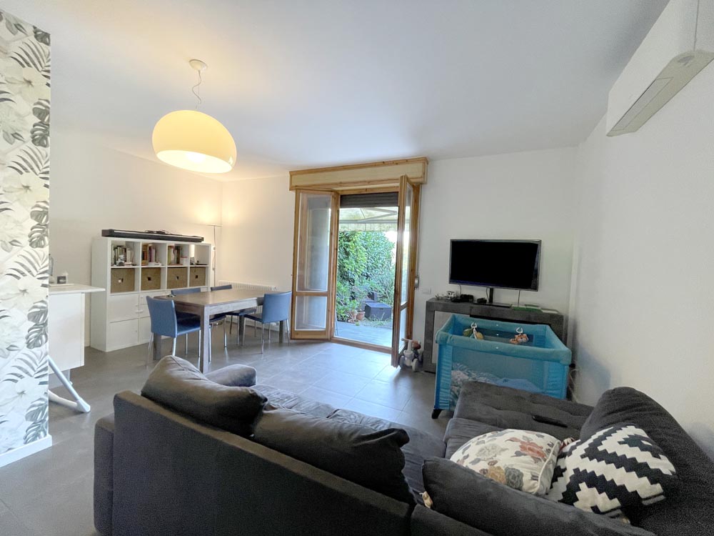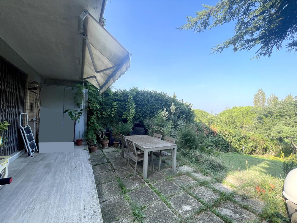 In contesto residenziale e a soli 500 metri da Riccione Paese, immerso nel verde, appartamento con ingresso indipendente con grande giardino di circa 300 mq, in palazzina di sole 4 unità.