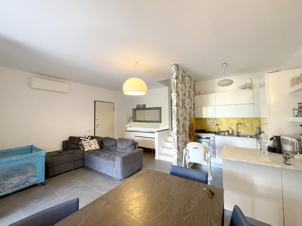 All’esterno è presente una loggia ideale per mangiare all’aperto con giardino con doppia esposizione e vista mare;