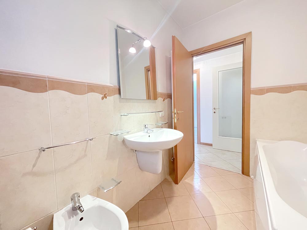 Proseguendo entriamo nella zona notte che è composta dal primo bagno finestrato di servizio con vasca, prima camera matrimoniale con bagno en suite, camera doppia ed ulteriore camera attualmente utilizzata come cabina armadio.