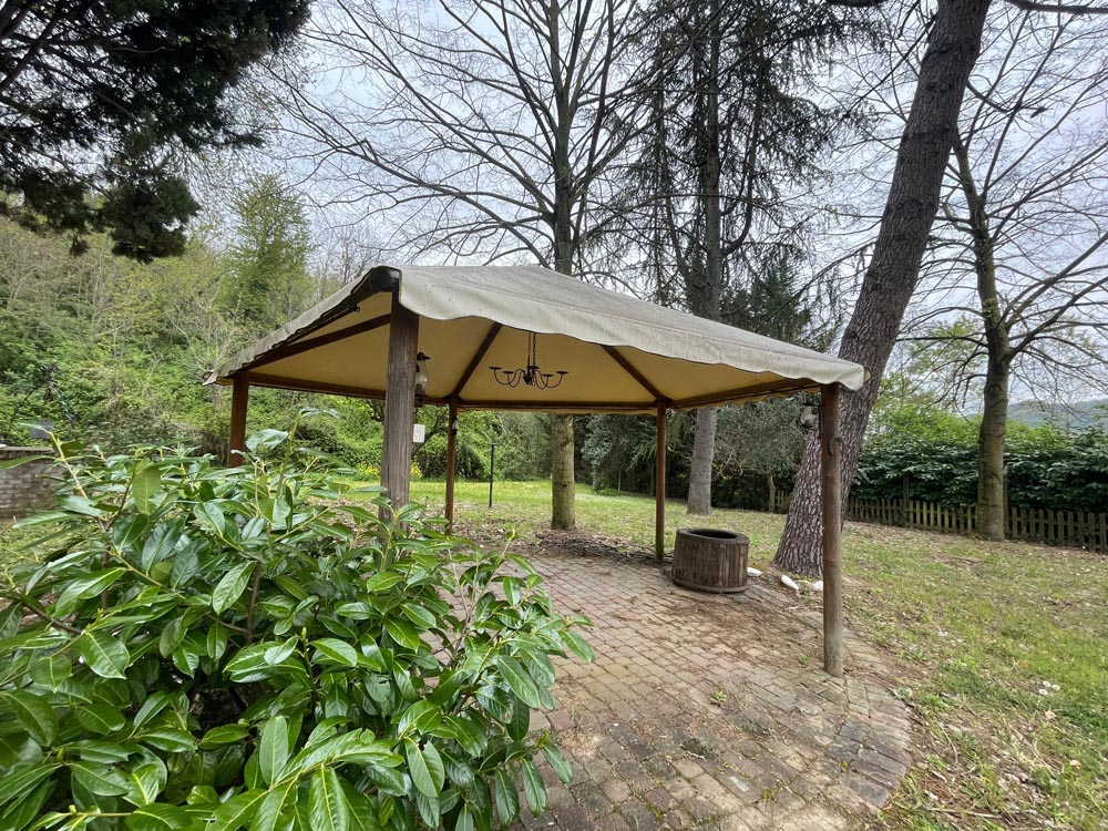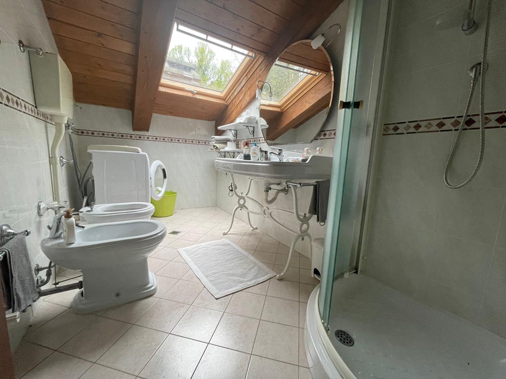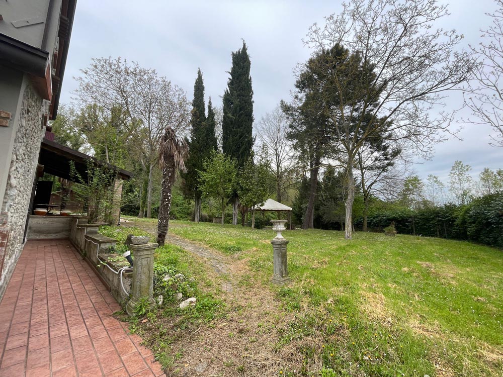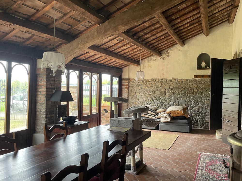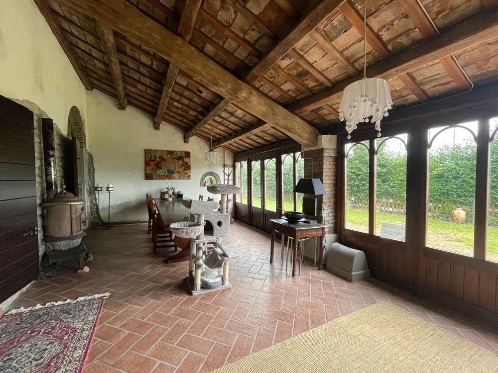 Tramite porticato entriamo all’interno della casa dove ci accoglie un ampio e doppio salone con camino, una cucina abitabile anch’essa affacciata su un porticato che ci conduce al giardino ideale per essere attrezzato per pranzi all’aperto, tramite scala in muratura si accede al piano superiore dove troviamo il reparto notte con 2 camere da letto e un bagno, salendo al piano mansardato troviamo un ampia stanza adibita a studio con camino e bagno.
